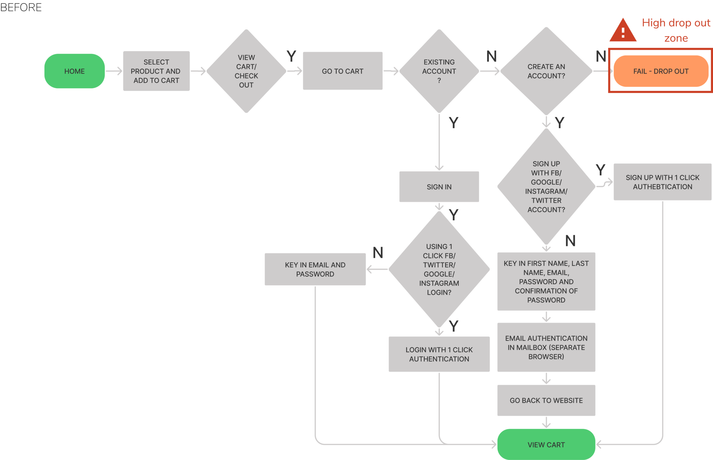 To prevent users from falling out of the purchase funnel at this crucial point, I removed the login requirement to view cart and for checking out. To ensure that we maintain marketing and EDM support, a newsletter opt-in checkbox is provided at checkout.